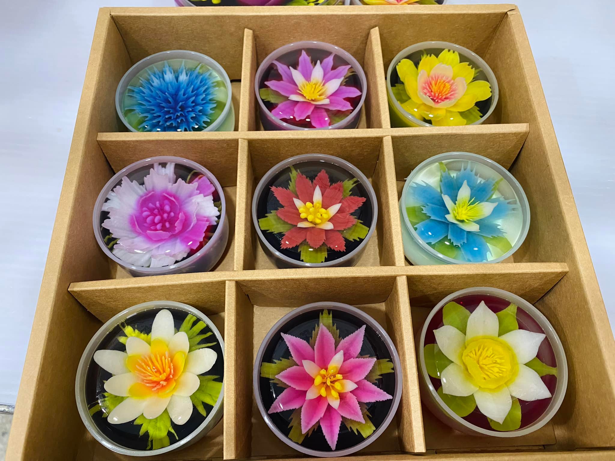 低糖蒟蒻凍甜點----天然3D果凍花 天然、不含色素&防腐劑 低卡、低糖、低熱量富含膳食纖維果凍 生日、聚會點心、活動甜點、伴手禮……等 拜拜禮佛最佳選擇 花瓣顏色採用蔬果汁 白色:鮮奶/椰奶 紅色:火龍果汁 黃色:南瓜/山梔子 紫色:火龍果汁/越南紫菜 綠色:抹茶 藍色:蝶豆花 ****************************************** 底層口味:以下可供選擇 季節性水果(例如:百香果、紅肉火龍果、鳳梨) 仙草、蝶豆花、咖啡、黑糖